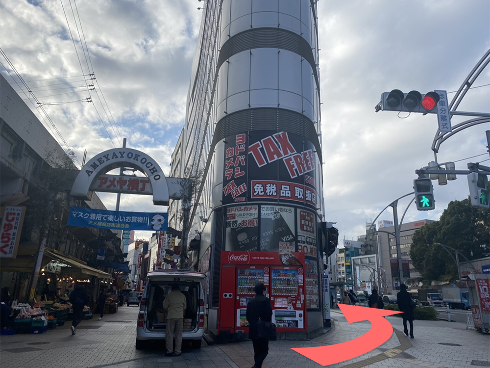 3)角にヨドバシカメラがありますので、大通り沿いを道なりに進んで頂くと隣にあります。