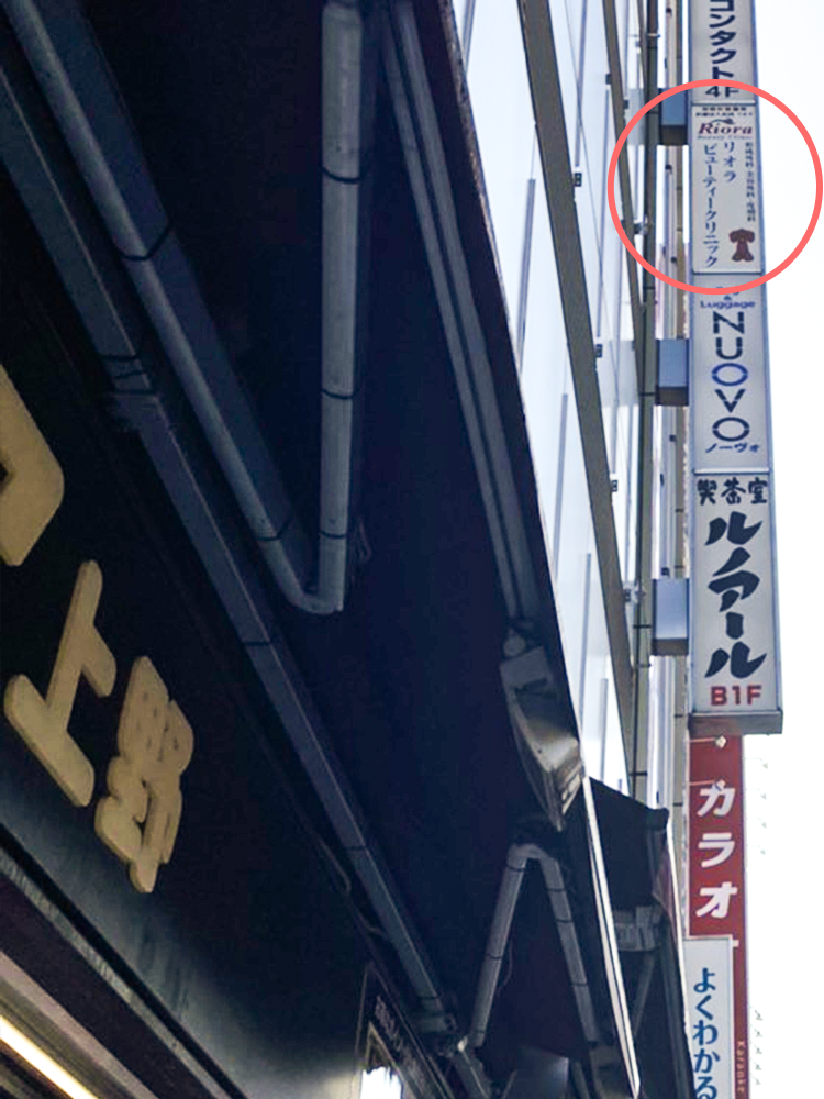 4)地下がルノアールです。こちらのビル(タツミビル)の2Fがリオラビューティークリニックです。